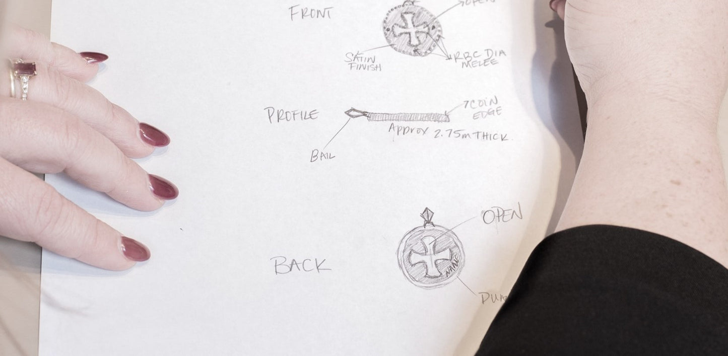 Our bridal experts will sketch and use computer-generated CAD 3D video renderings to design and edit your vision. If desired, wax moldings can be provided to allow you to wear, touch, and feel your ring. If approved, creation proceeds.