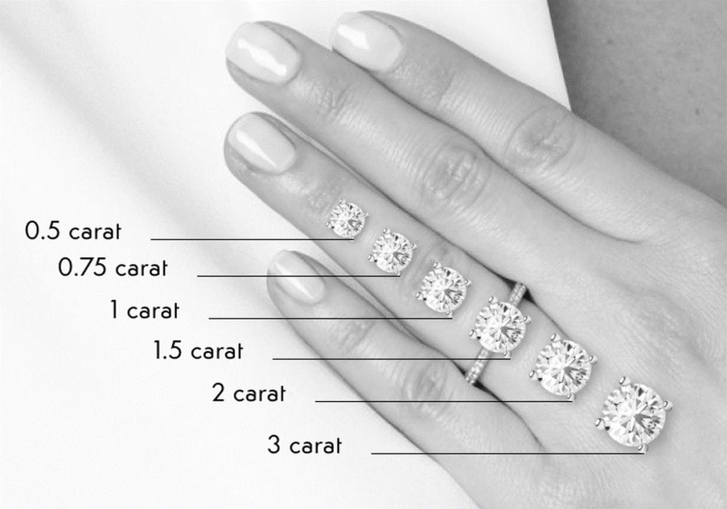 Often mistaken for size, a diamond’s carat is a measurement of weight. The weight of a diamond is expressed in points or carats. A 1 carat diamond equals 100 points, and a ½ carat diamond equals 50 points, etc. Generally as a diamond’s weight increases, so does its rarity and value.